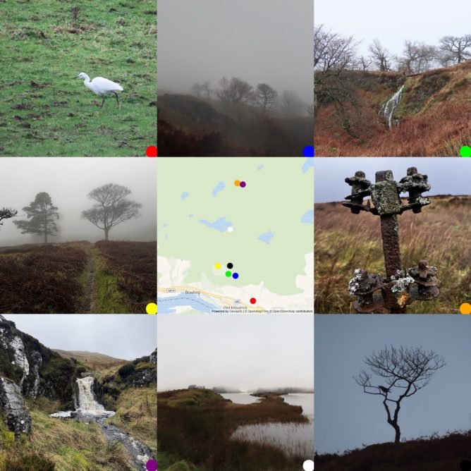 A walk to Duncolm via Loch Humphrey & Fynloch hill in the mist & drizzle today. Very mild for the time of year. The burns are full and the paths are bogs. Some photos on a map: